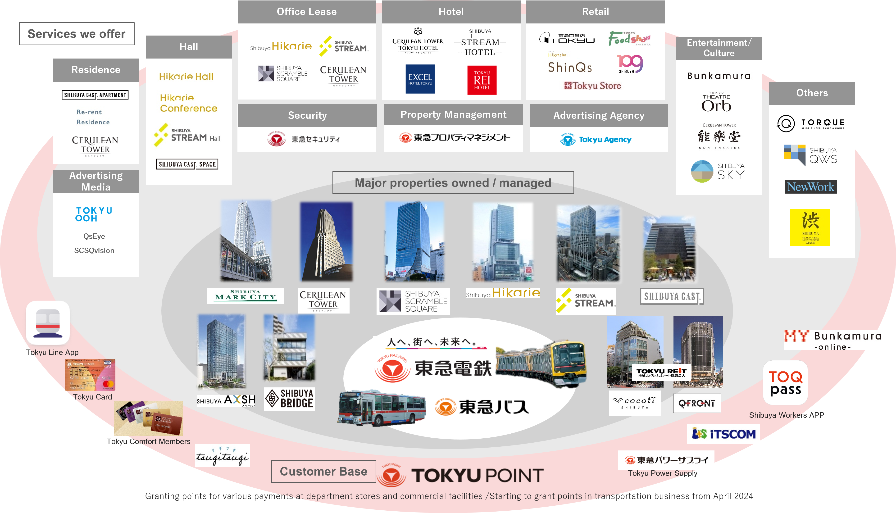 We are a regional conglomerate that operates a wide variety of businesses in areas centered along the Tokyu Line.