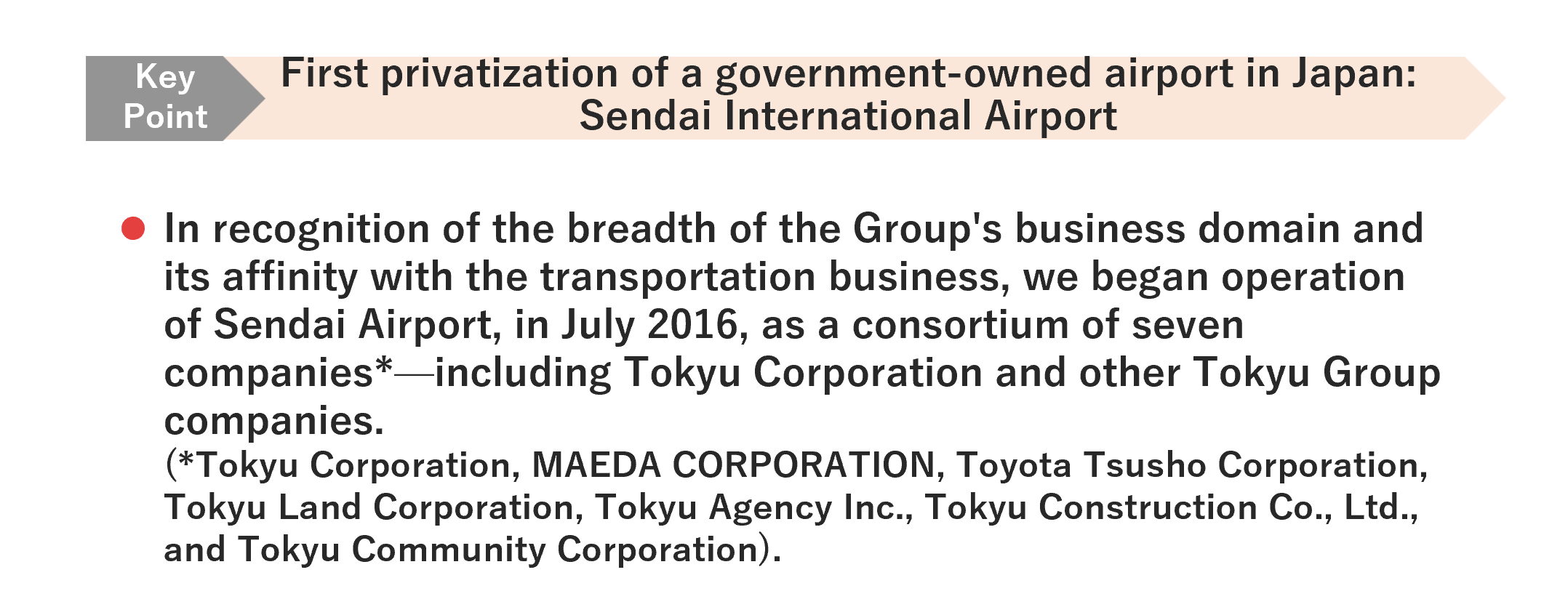 Built on a basis of safety, the airport management business has a high degree of affinity with the transportation business. Thus, we are carrying out contracts for the management of airports in various regions.