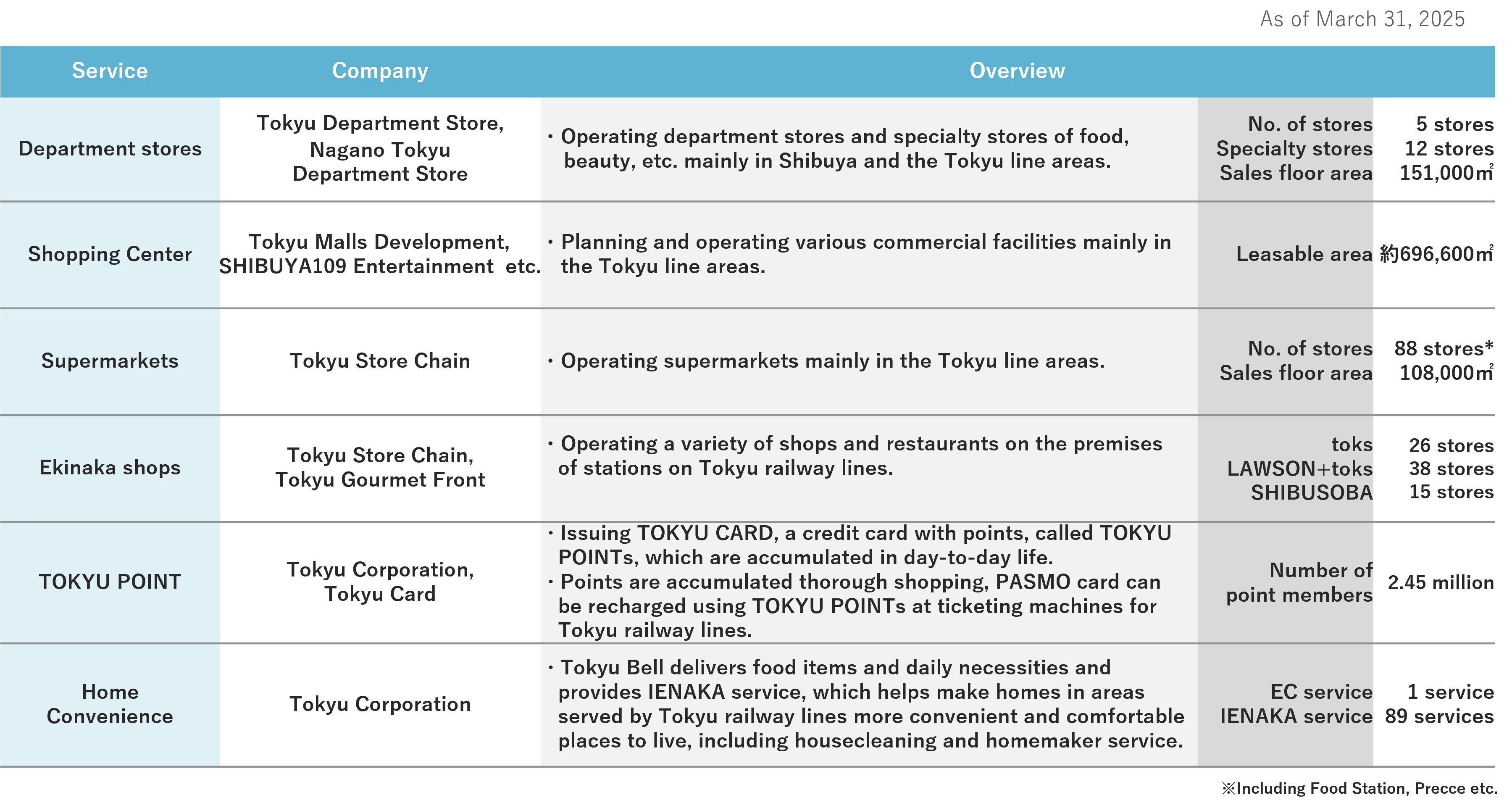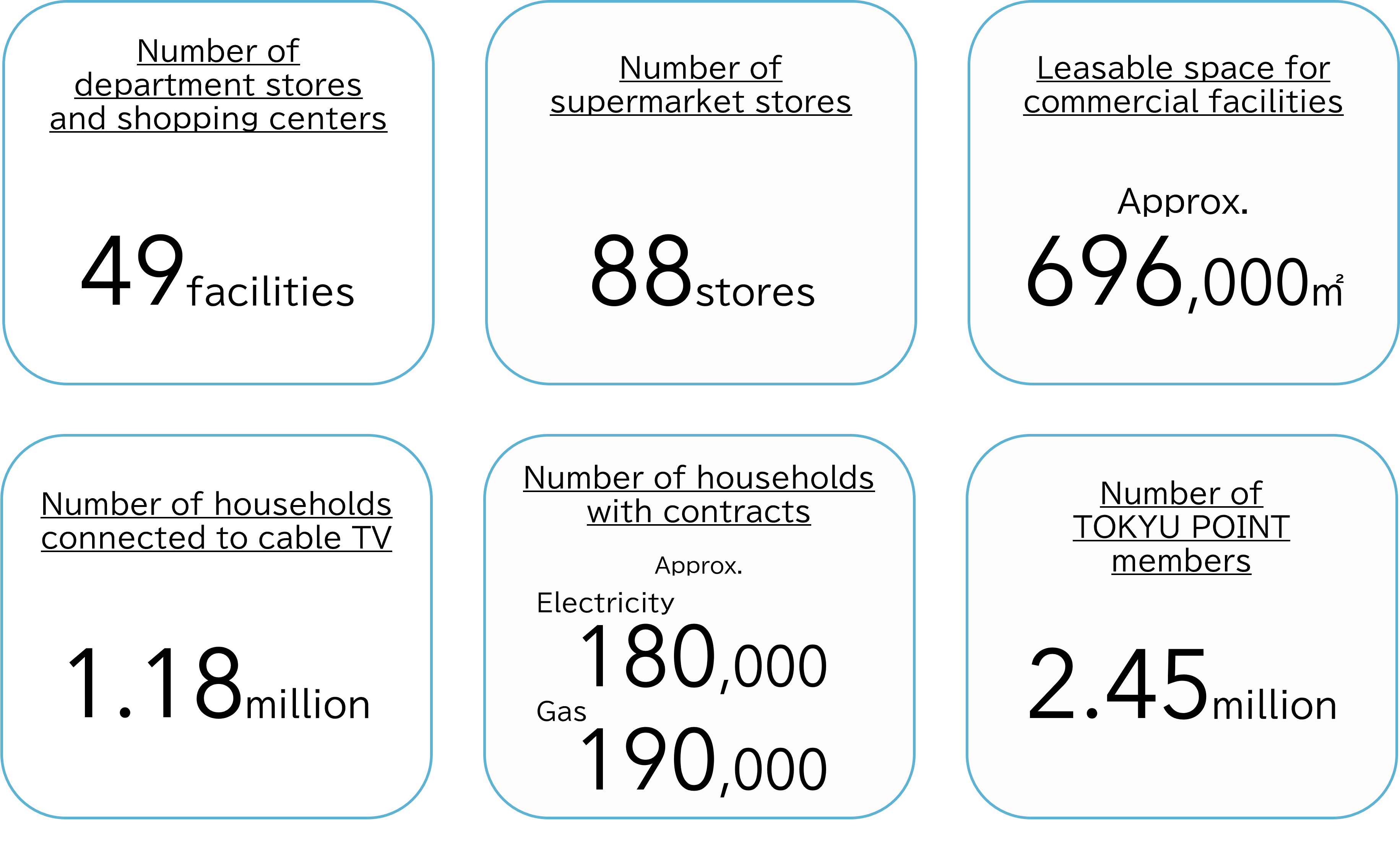 We are improving the convenience and appeal of the Tokyu line areas by developing our commercial facilities mainly along the Tokyu Railway lines. One of our strengths is that we have built strong relationships with our customers through various points of contact.