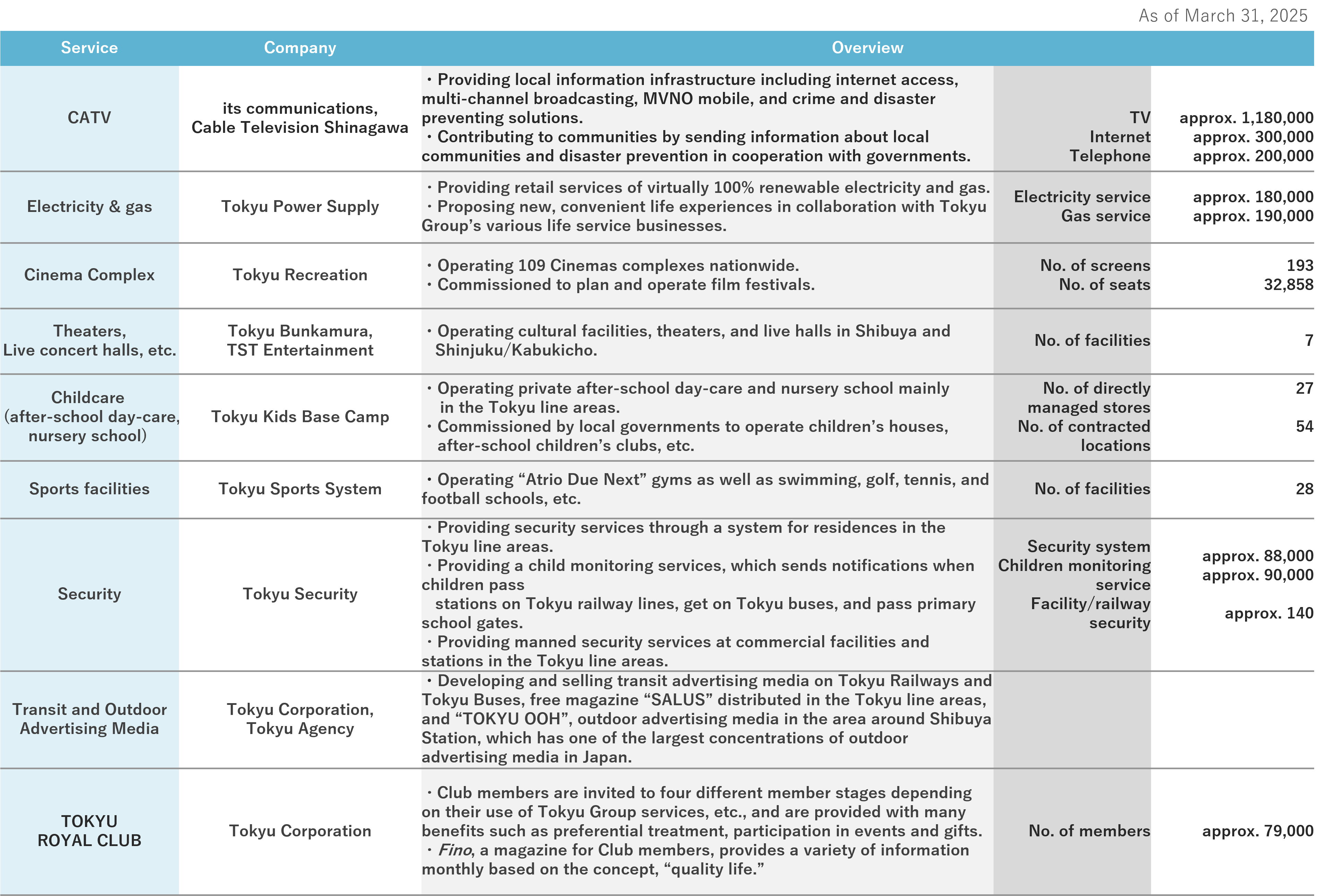 Our Life Service Business offers a diverse range of services to enhance the convenience and appeal of communities we serve, contributing to increased value across the Tokyu line areas.