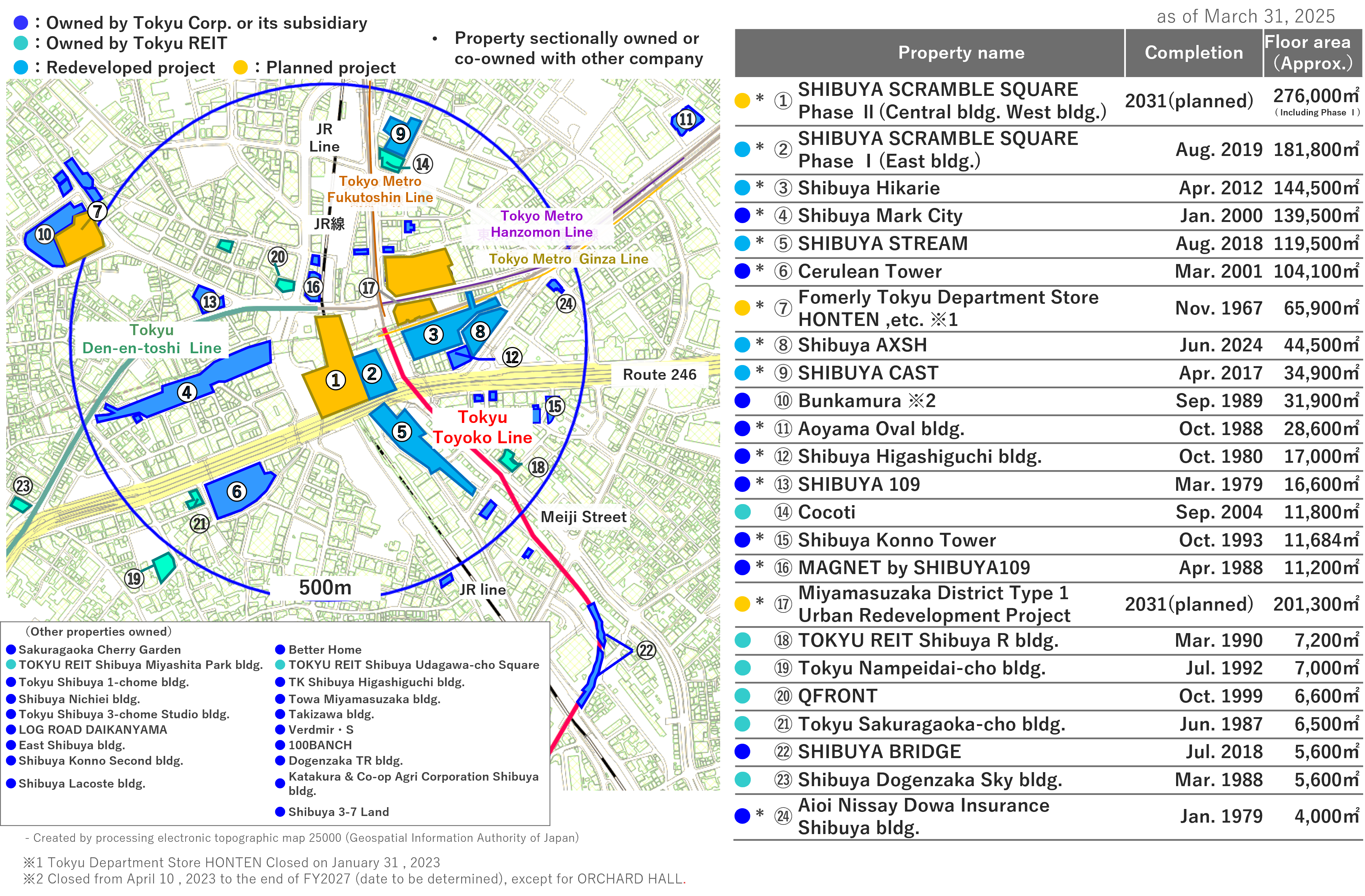 Our Redevelopment Projects in the Shibuya Area (including those currently underway)