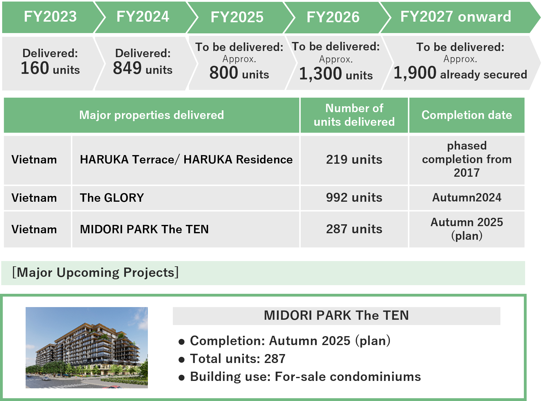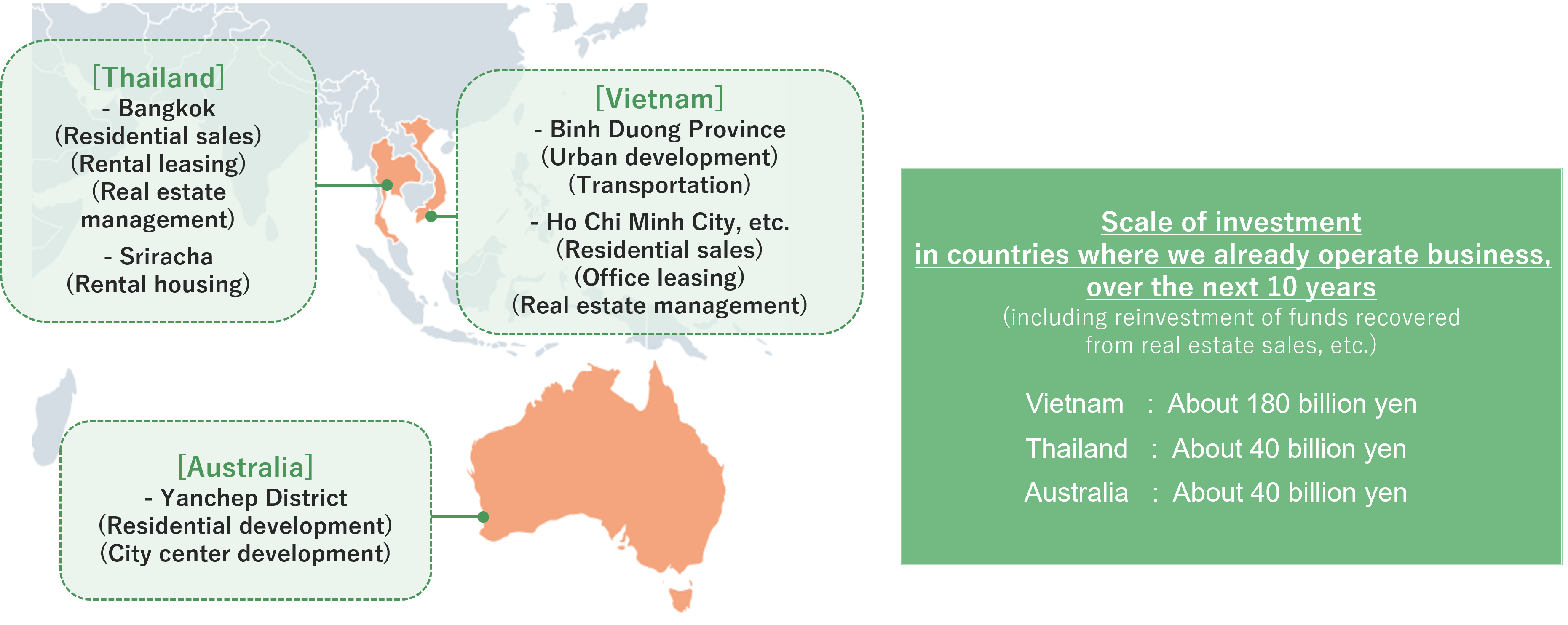 In Japan, we promote population attraction to the Tokyu line areas through the real estate sales. Overseas, we aim to secure and expand stable earnings mainly through projects in Vietnam.