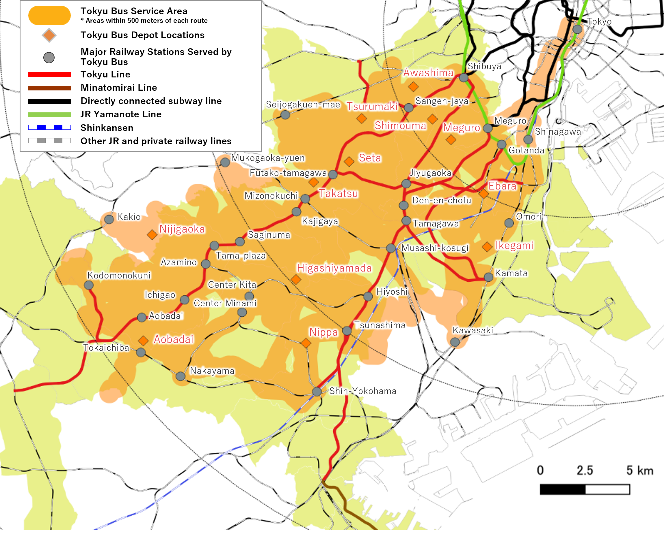 • Operates an extensive route network across urban areas in Tokyo and Kanagawa, in close coordination with the railway system.