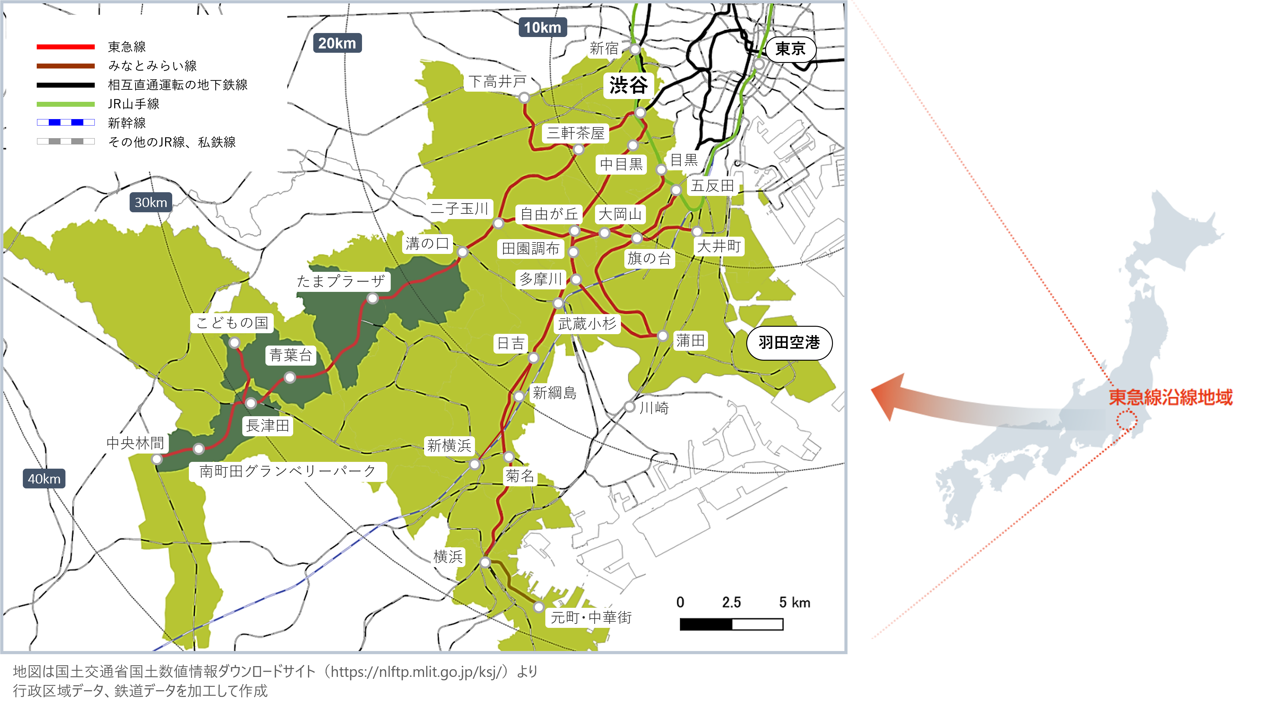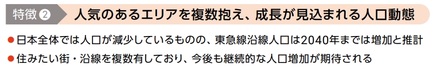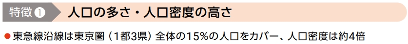東急線沿線は東京の西南部に位置し、首都圏人口の15%が集積するエリアです。当社資産の約7割はこの渋谷・東急線沿線エリアに集中しており、沿線エリアへの集中投資によりエリア価値の更なる向上を目指しています。