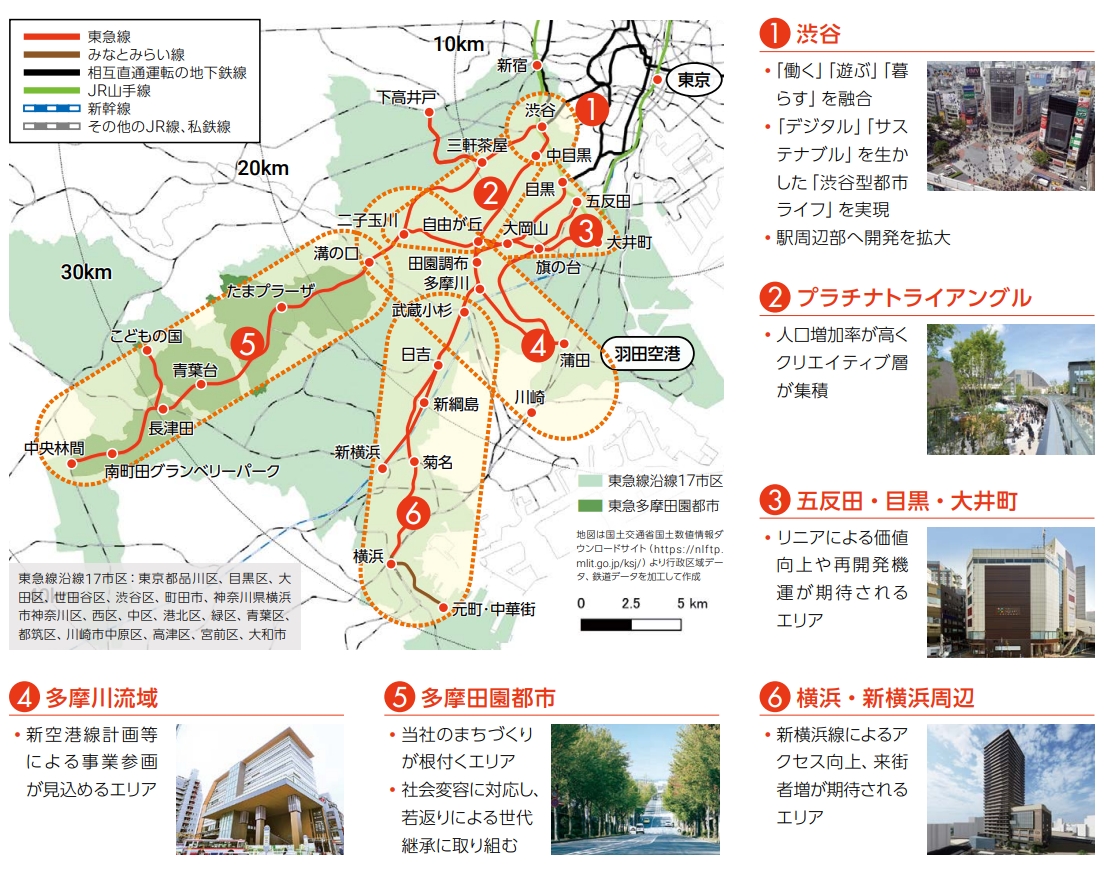 東急線沿線では、各エリアの特性に応じた開発を行っています。