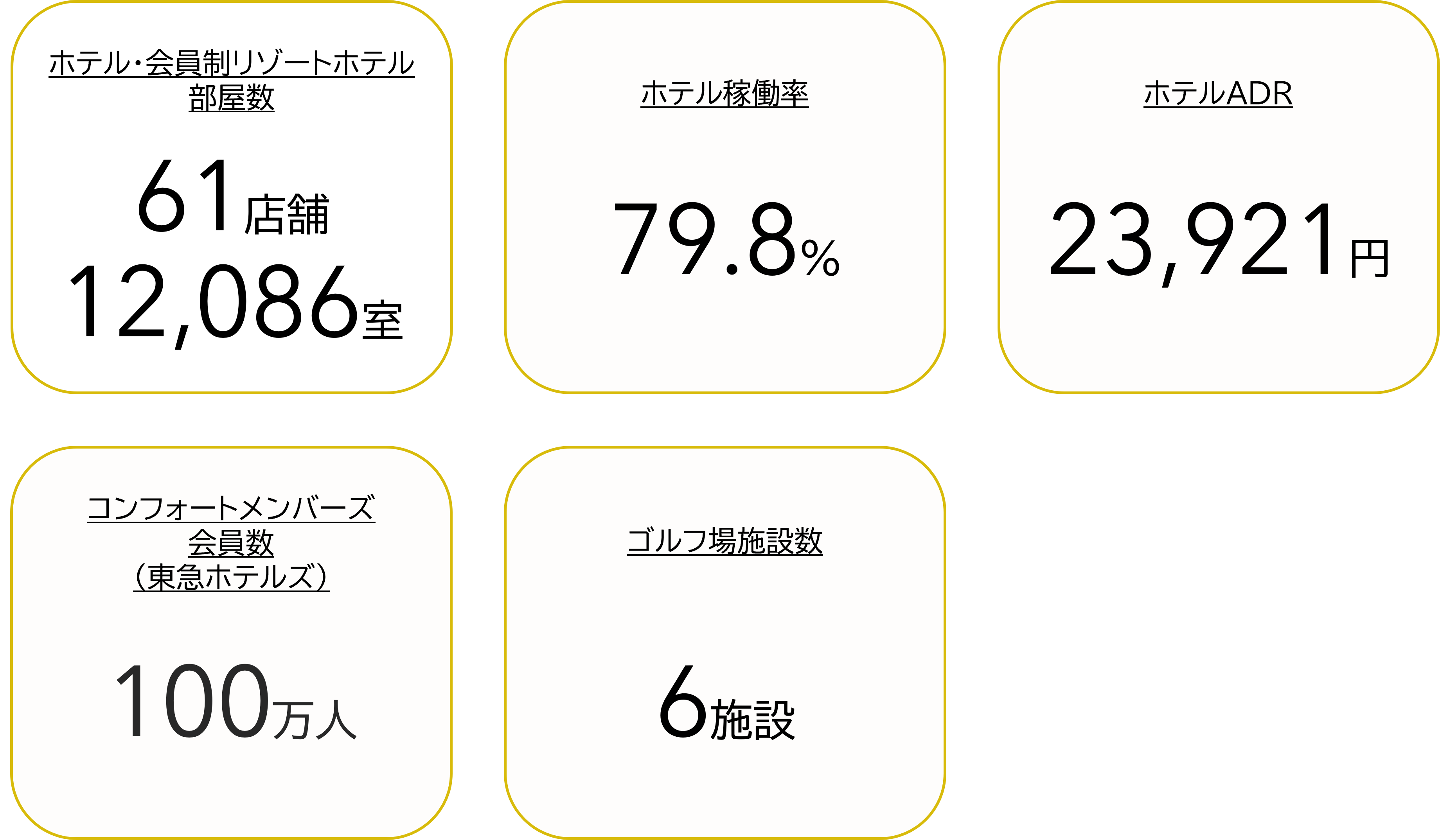 当社は子会社を通じ、国内に会員制ゴルフ場4カ所、パブリックゴルフ場2か所の計6カ所のゴルフ場を展開しています。社交の舞台として名高いゴルフ場から、身近なスポーツ・レジャーとして楽しんでいただけるゴルフ場まで、それぞれの特性を生かしながら、お客さまのニーズにあった質の高いゴルフライフを提供しています。また、プロゴルフトーナメントの開催や、一般女性ゴルファー向けイベントである東急レディスゴルフの主催など、さまざまな形でゴルフに関わっています。