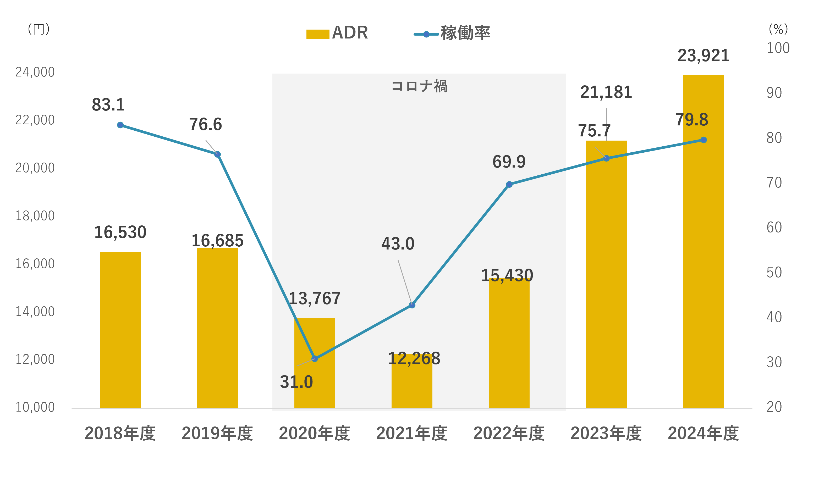 インバウンド需要の取り込みなどにより、稼働率/ADRともに堅調に推移しています。