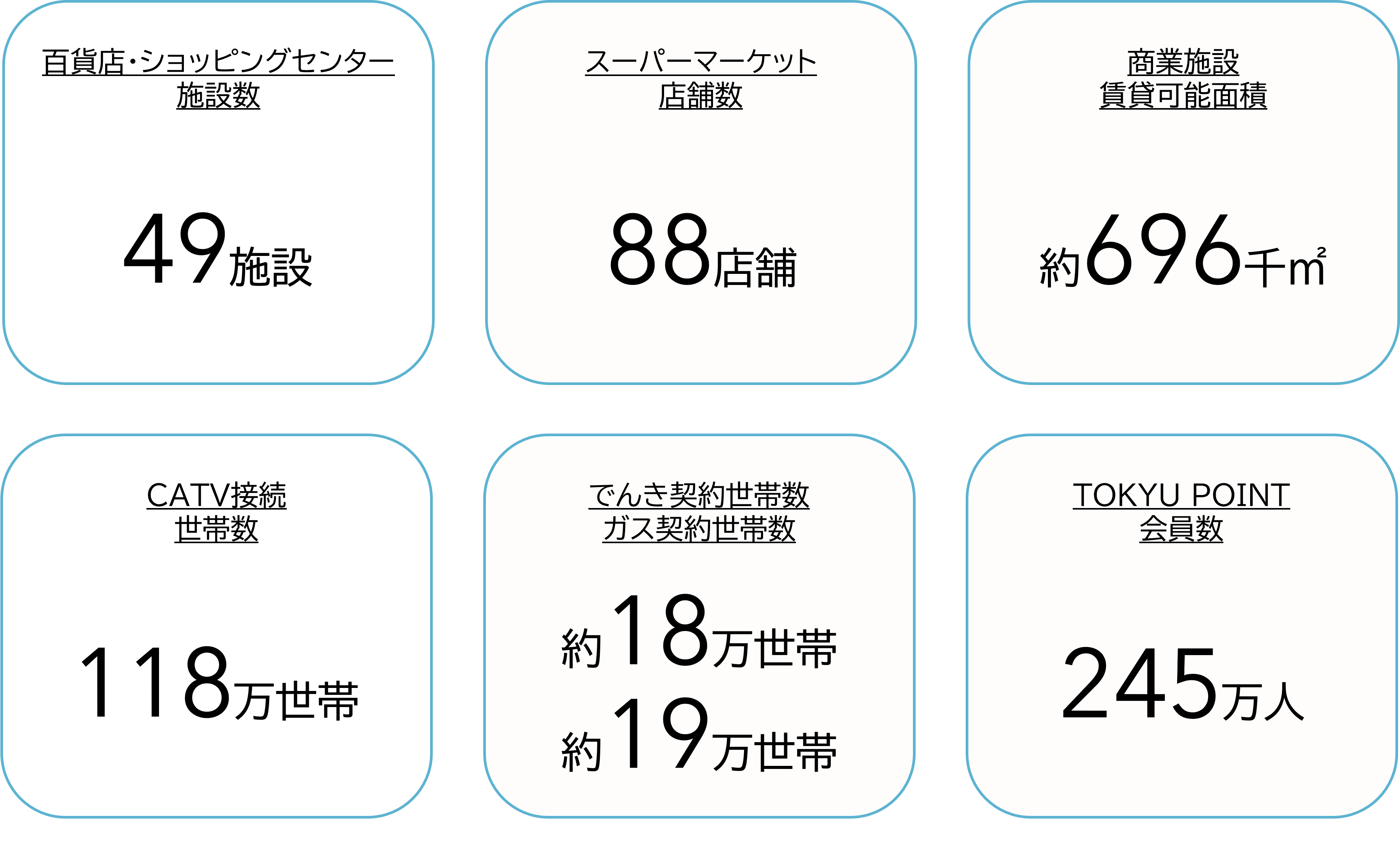 東急線沿線を中心に、当社商業施設を展開することで、街の利便性や魅力を高めていきます。また、お客様との豊富な接点を持ち、強固な関係を築いていることが当社の強みとなっております。