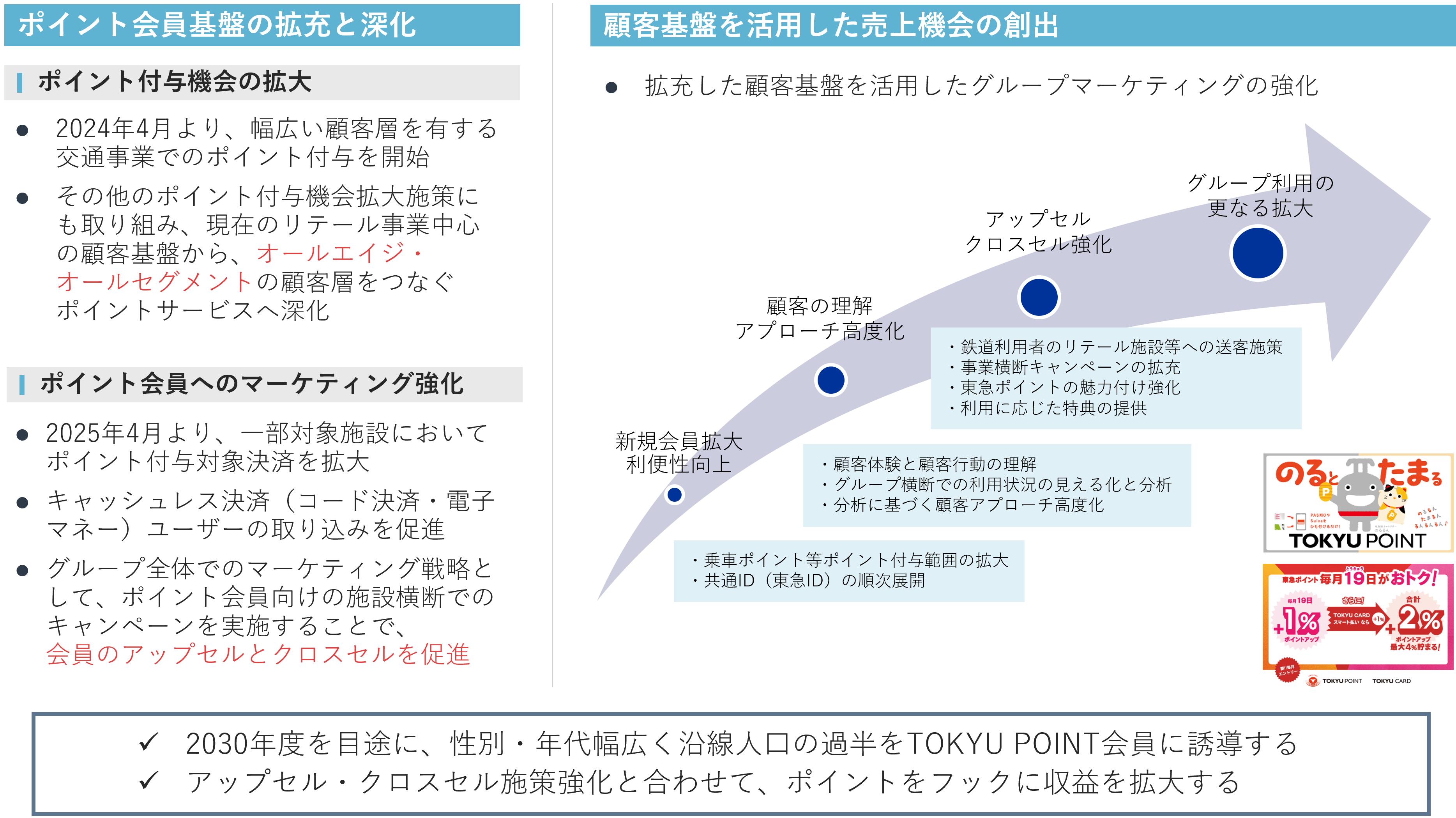 ポイント制度の深化を通じた顧客基盤の拡充と、その顧客基盤を活用した事業間連携を促進していきます。そして、アップセル・クロスセス等の売上機会の創出により、より良い顧客体験とエリア価値向上の実現を目指します。