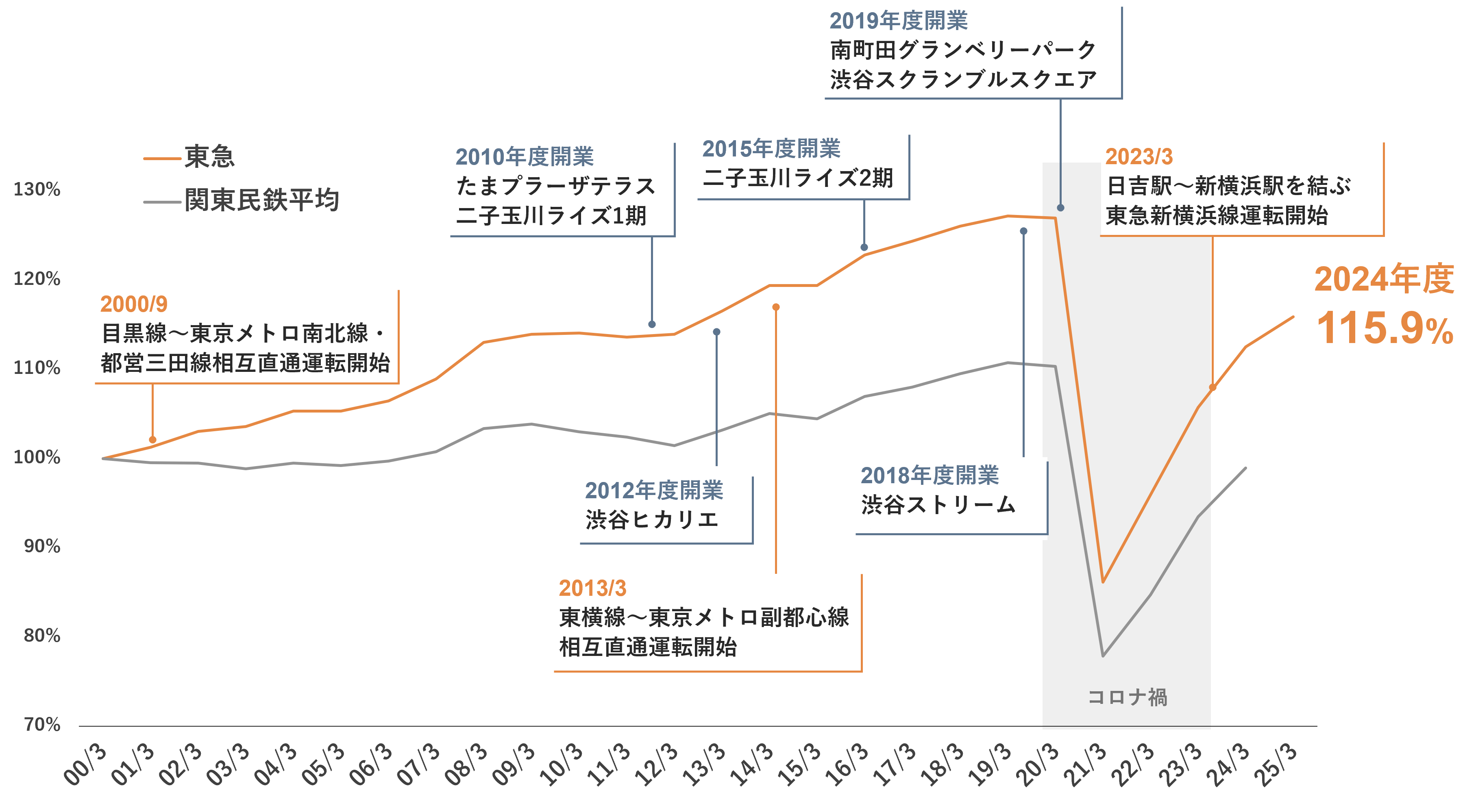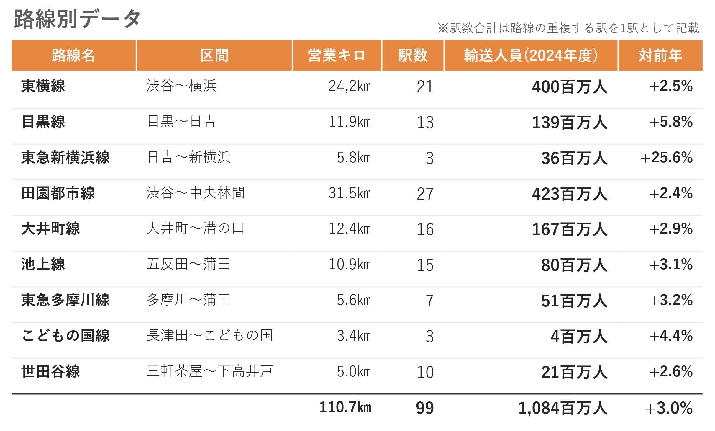 ※関東大手民鉄・・・東急、東武、西武、京成、京王、小田急、京急、相鉄