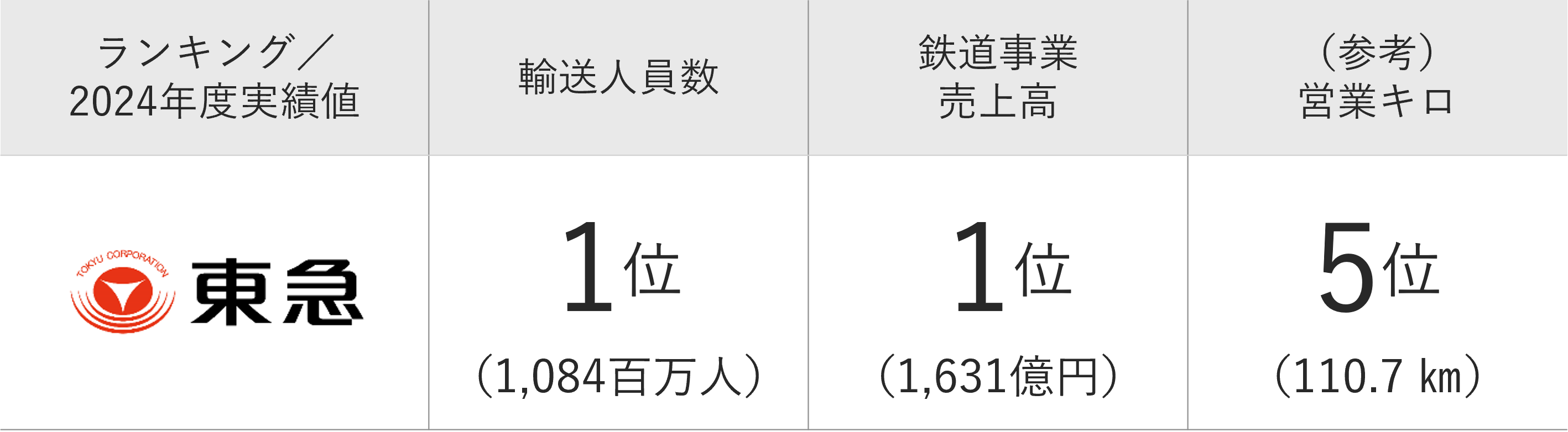 関東大手民鉄8社※内の当社ポジショニング