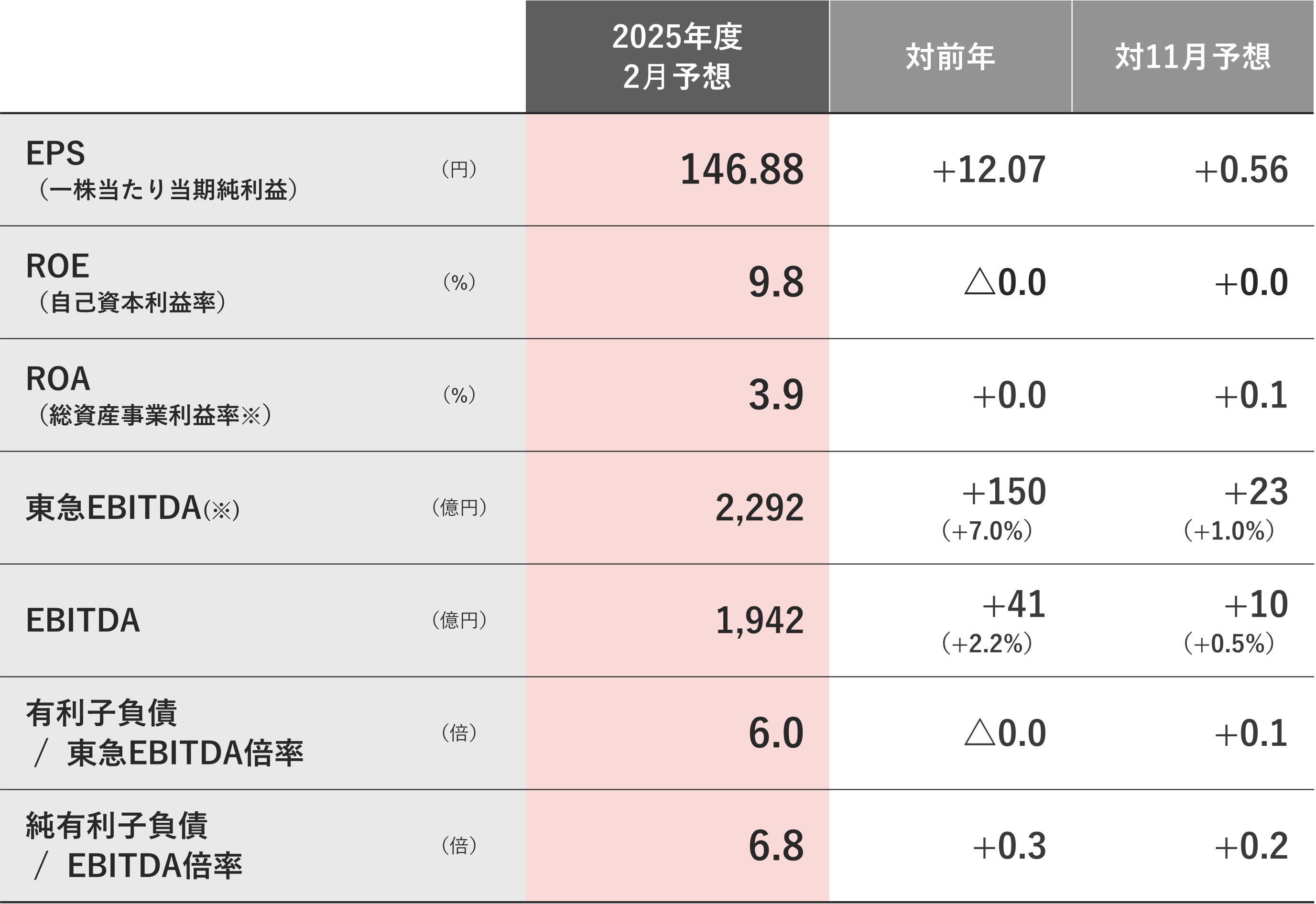 ※ 東急EBITDA = 営業利益 + 減価償却費 + のれん償却費 + 固定資産除却費+受取利息配当+持分法投資損益